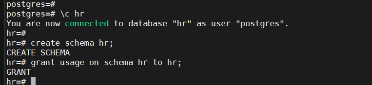 postgresql 은 database와 schema가 나뉘어져있고 아래 구성대로 생성한다.