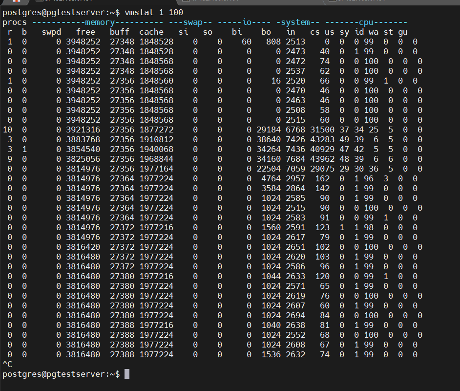 [TEST] 동시접속자 10명이 트랜잭션 1000개 사용시 vmstat 메모리 확인