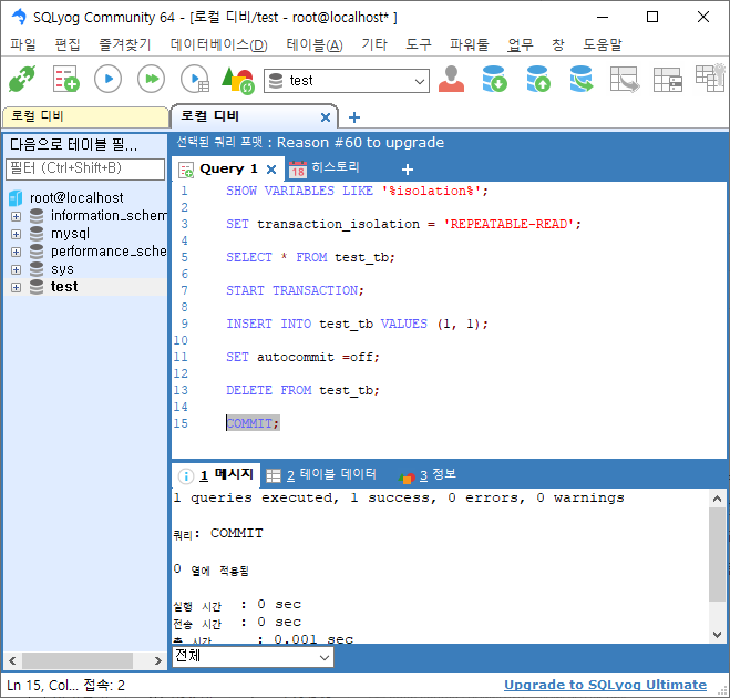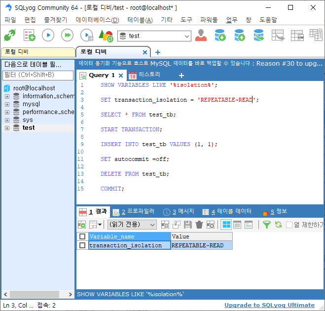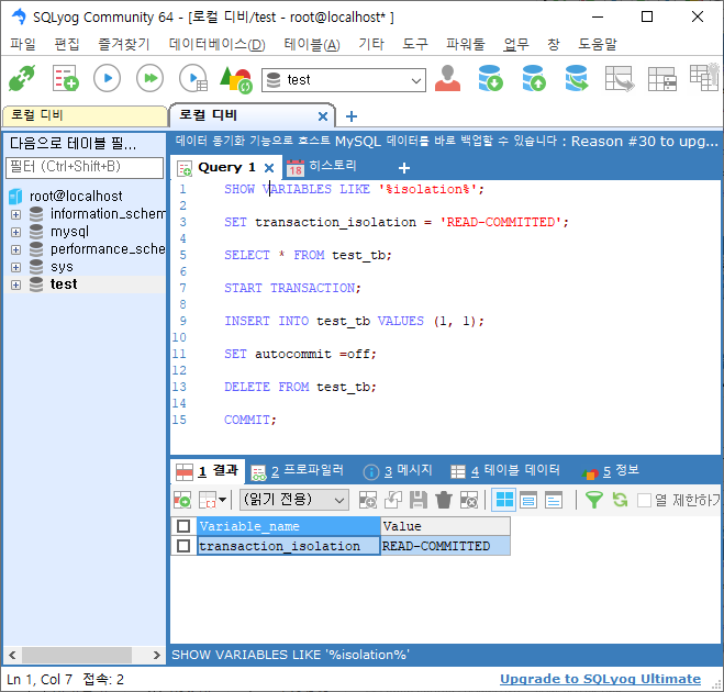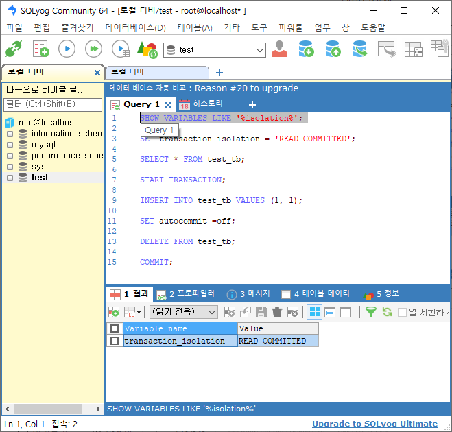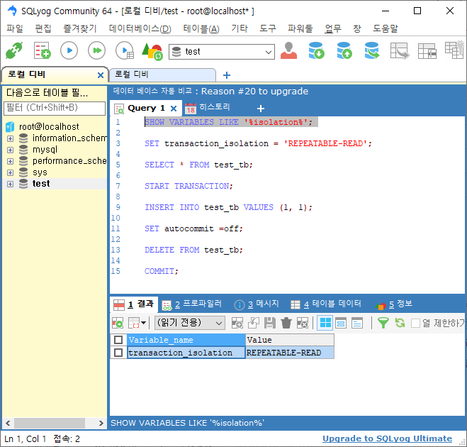 트랜잭션 레벨 확인