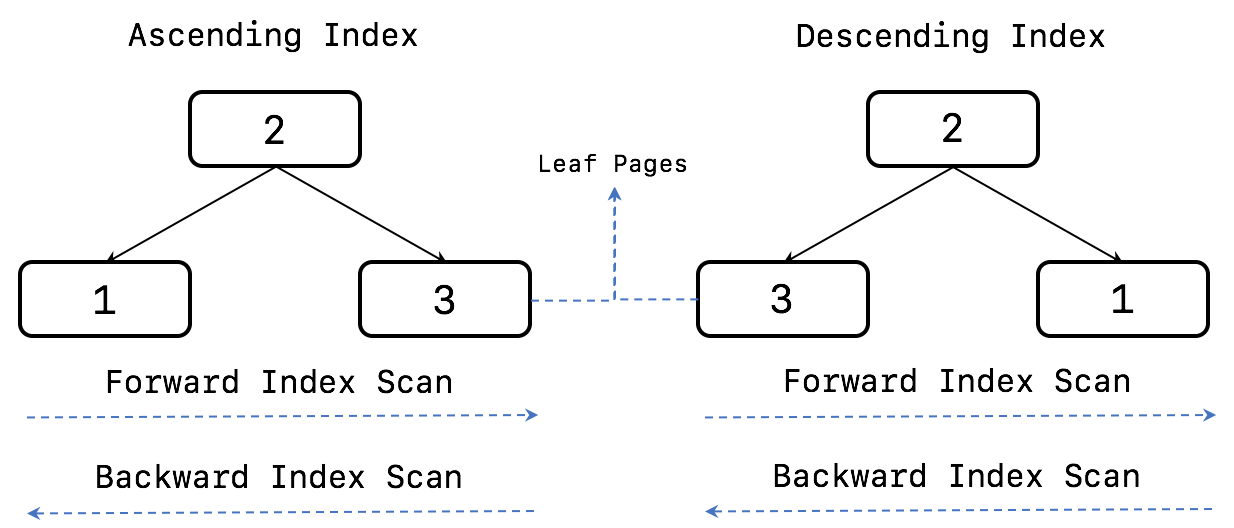 - Ascending index : 작은 값의 인덱스 키가 B-Tree의 왼쪽으로 정렬된 인덱스