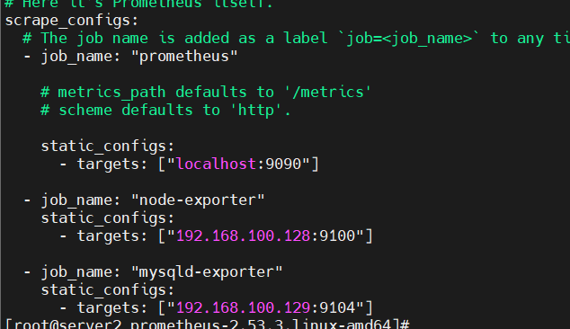 - targets: ["192.168.100.128:9100"]