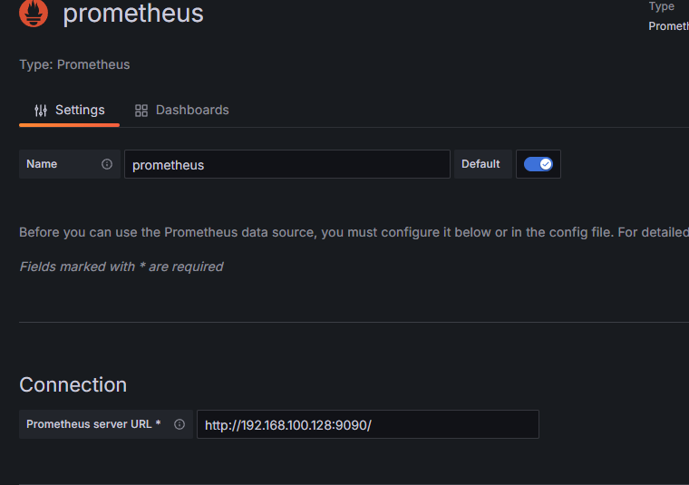 - data source 선택시 prometheus 설정