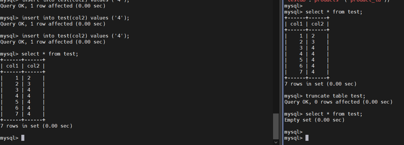 test 테이블의 건수가 7개 다름을 check